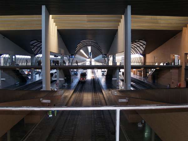 En el más celebrado de los edificios de la Sevilla de finales del XX, sus autores consiguen construir en una sección, aquella que acompaña el movimiento del usuario del transporte ferroviario, todo un cúmulo de aconteceres que dotan al edificio del innegable atractivo de lo cambiante, auxiliado por una maestra utilización de la escala de los espacios y la luz precisa para cada uno de los recintos.