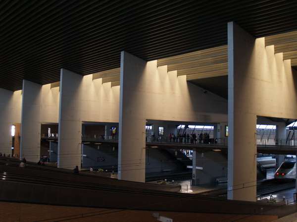Tras él, la sección no deja descanso a la calidad espacial que logra en los lugares de acceso y bajada a las vías y en las cubiertas curvas de las mismas, con un prodigioso juego de niveles, de comunicaciones, escaleras y rampas entre los mismos, de espacios que dominan visiones siempre diferentes de un lugar con voluntad de unidad y que invita a prolongar las vías, mucho más allá de lo perceptible, con la imaginación, hasta la Atocha de Moneo.
