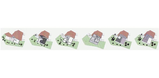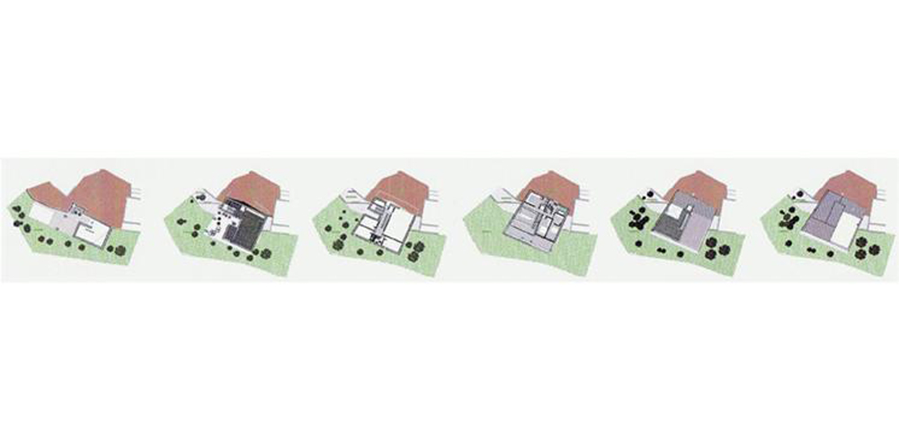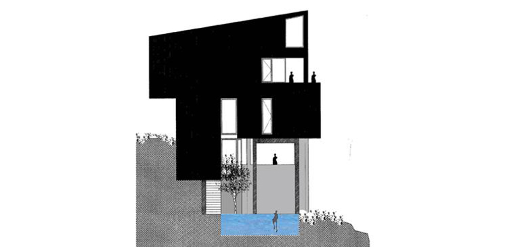 La vivienda se ha de desarrollar en 5 niveles, debido, por una parte, a un programa complejo definido por la propiedad y por otra al gran desnivel existente, unos 9m, entre ambos lados de la parcela.