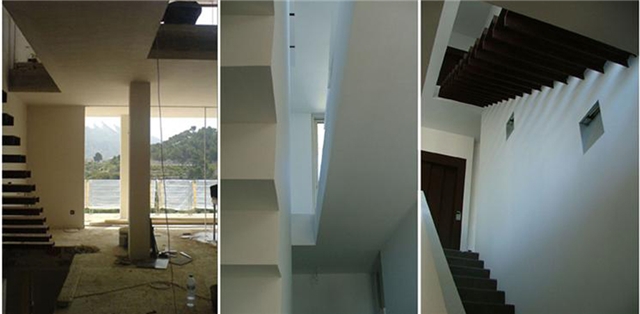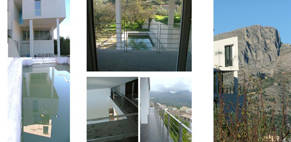 La vivienda nace sobre un bancal de naranjos y crece , con la traza de los bancales y volcada visual y espacialmente a ellos en los 2 primeros niveles, y con la dirección del vial, volcada a las vistas de la sierra, en los 2 últimos, sirviendo la planta central , donde se sitúa la entrada, de transición entre estas 2 direcciones.