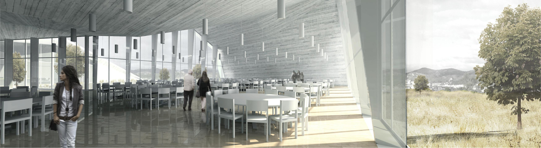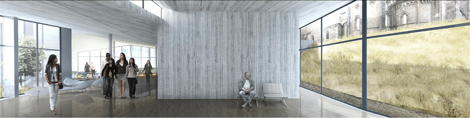 El programa propuesto es el de un edificio de servicios anexo al Monasterio para acoger salones para la celebración de eventos, comidas etc. con una capacidad importante, espacios que por las limitaciones de las crujías del edificio histórico es difícil introducir con la superficie y con las condiciones necesarias.