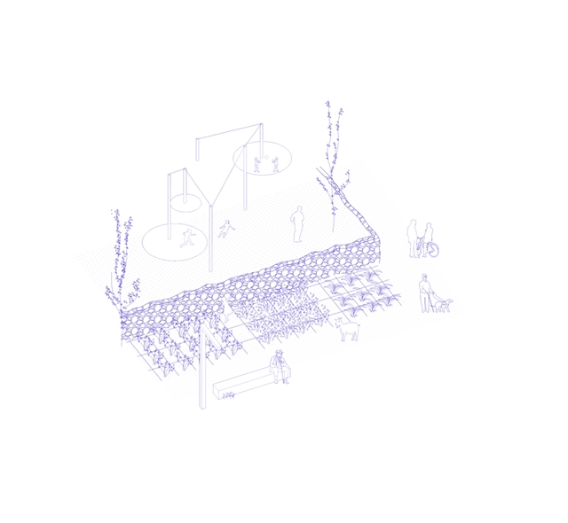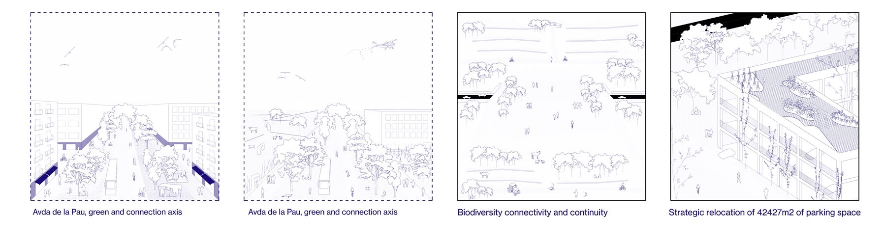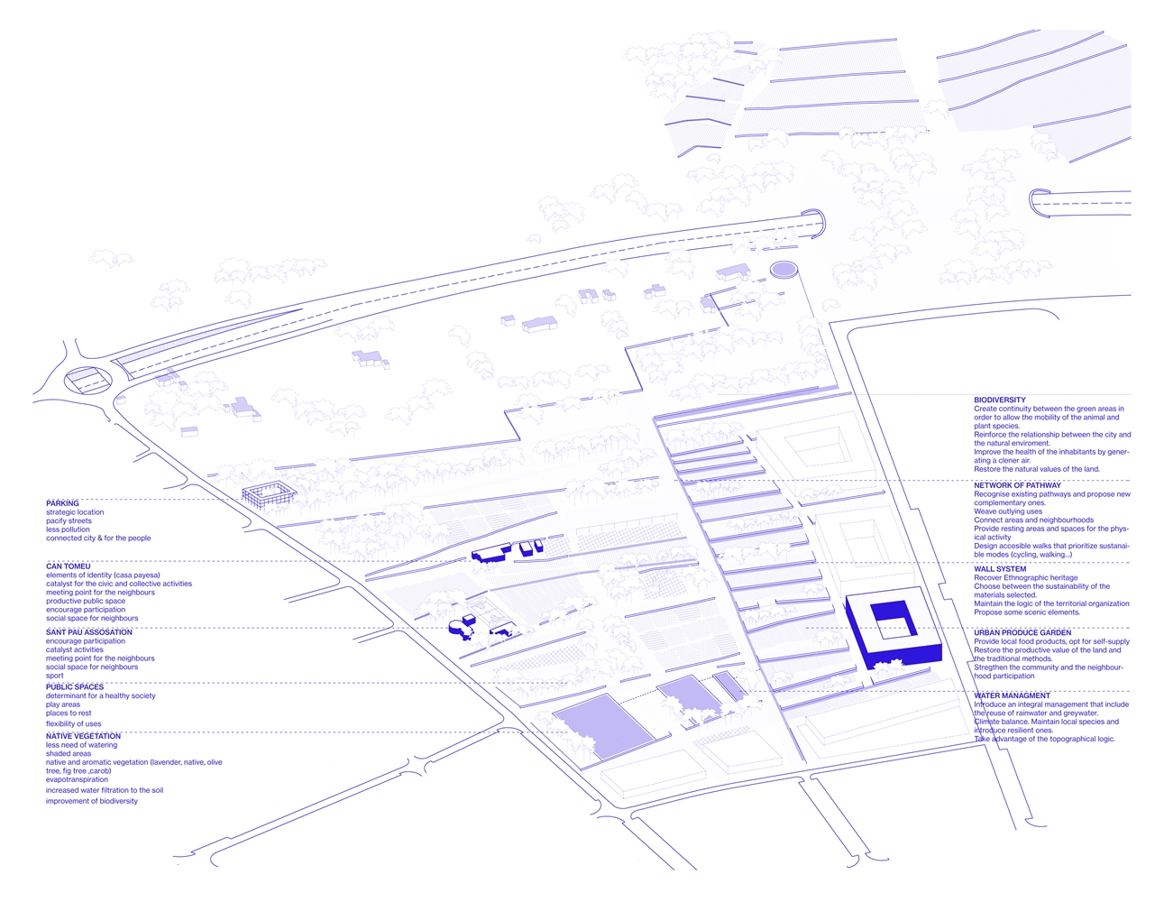 El ámbito de proyecto se sitúa en una posición estratégica como área de transición entre el entorno natural de Vila y el centro de la ciudad. Can Escandell es uno de estos grandes espacios que conforman esta nueva infraestructura verde para Ibiza, un sistema en el que las actividades humanas convergen con los ecosistemas del territorio. Bajo esta lógica, el espacio público no puede ser entendido como el negativo del espacio construido, un vago lugar de recreo y reposo entre edificaciones sino como un espacio estructurado, activo y complejo.