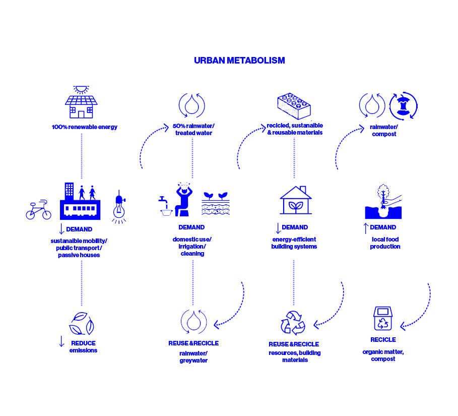 La estructura cíclica de la propuesta no se entiende sólo en términos ambientales, energéticos y territoriales sino también desde una perspectiva temporal. El proyecto se apoya en el legado tradicional de la isla, proponiendo la reinterpretación de la vénta ibicenca en términos contemporáneos.