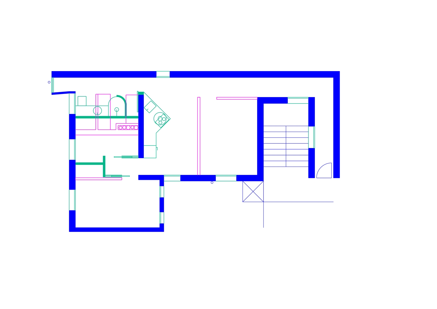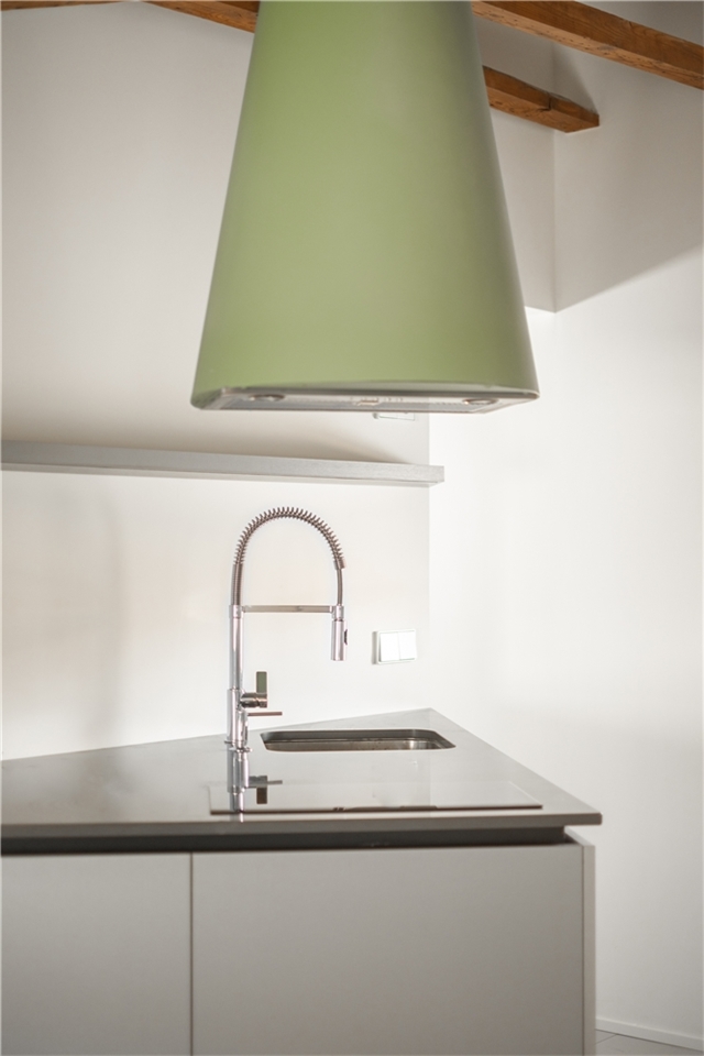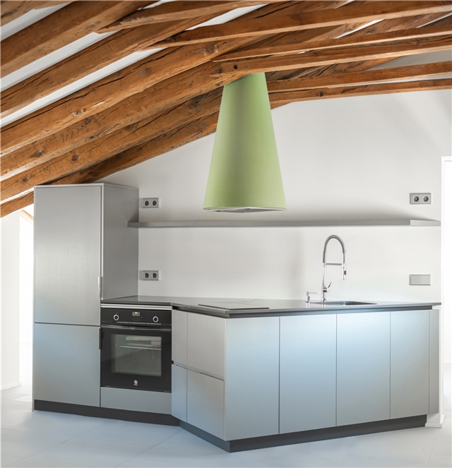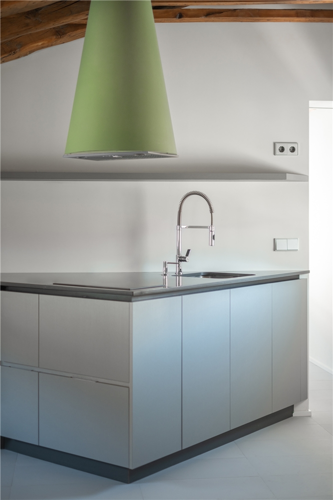 A veces se necesita más de lo que parece caber. Una cocina triangular parece haberse revelado contra la ortogonalidad que parecía dictar la preexistencia y nuestras costumbres, y nos preguntamos, sorprendidos de haber hallado con ello el espacio suficiente, cuál es el poder de la geometría, sus razones internas y su lógica de funcionamiento.