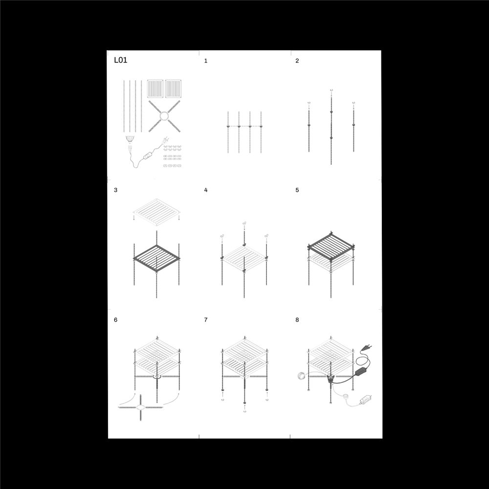 La lámpara nace de esa operación mínima. Frente a la producción de formas, aparece la selección, el ensayo, el montaje y la edición. Un trabajo de collage con aquello disponible. Mirar las características materiales y formales de una cosa por encima de sus fines pensados. Ir a la cantera más próxima, obramat, y buscar, encontrar, dudar, por qué no, quizá esto sí.