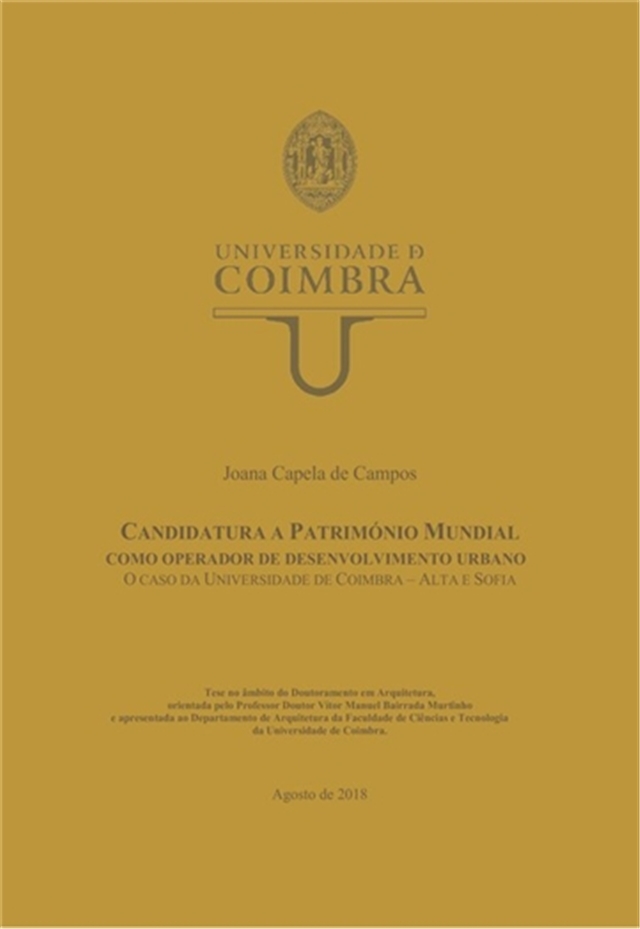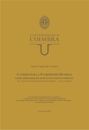 This PhD in Architecture research seeks to analyse and understand the World Heritage nomination of the University of Coimbra – Alta and Sofia (WHN UC-AS) as an operator of urban development, for Coimbra. The starting research premise is that the WHN UC-AS was a strategy to promote the urban development through the reimplementation of the bond encountered in the univer(sc)ity. This urban development based on safeguarding the architectural heritage of the UC and on the rehabilitation of the nominated urban areas is central to our study, which seeks to understand ‘why’ and ‘how’ a WHN process can be implemented as an operator of urban development.