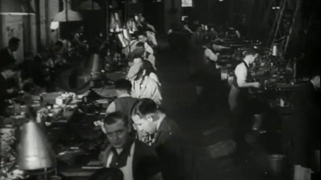El rey Jorge VI visita una fábrica de armas, mientras que la reina Isabel (la reina madre) visita el Servicio Territorial Auxiliar de Mujeres.