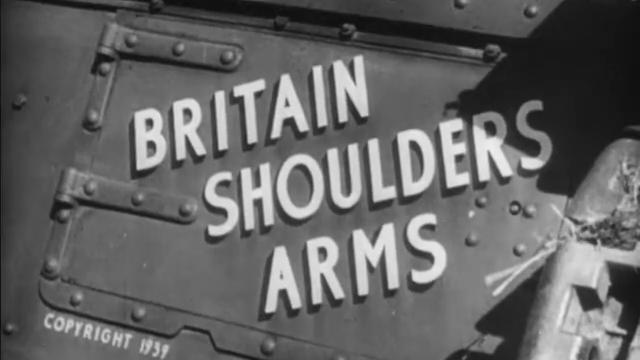 Con imágenes de la Primera Guerra Mundial y maniobras de entrenamiento militar de todo tipo, 'Britain Shoulders Arms' explora al ejército británico a medida que se moderniza y va a la guerra.