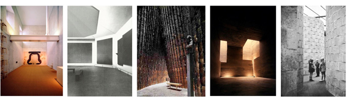 As referencias que poden ilustrar este enunciado poden ser moi variadas: a sala de reflexión de Antoni Tàpies na UPF, a capela Rothko en Houston, a capela de campo Bruder Klaus de Peter Zumthor, o proxecto da montaña Tindaya de Chillida, o Sonsbeek Pavilion de Aldo van Eyck, a MIT Chapel de Saarinen etc.