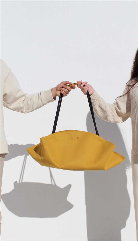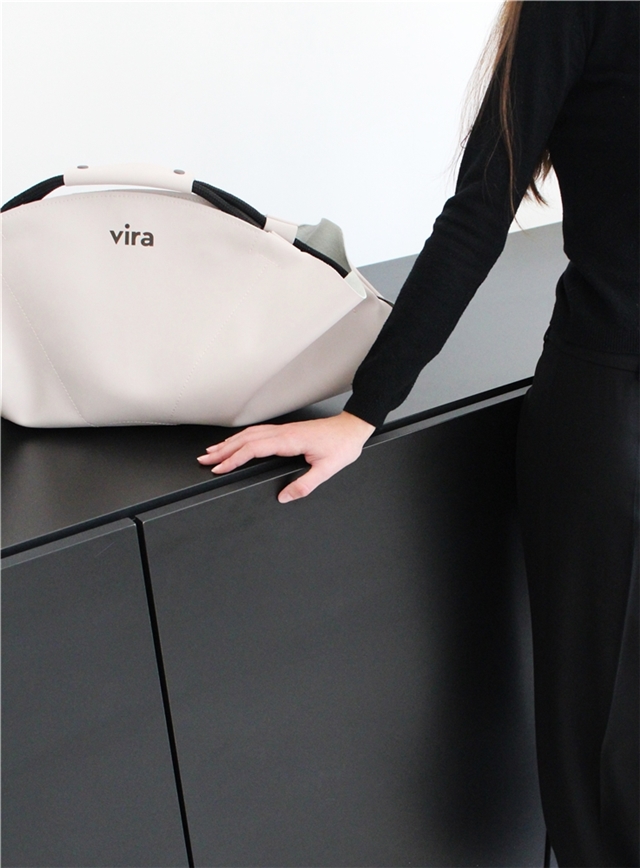 Vira hace alusión a viraje, a los cambios de dirección, a la evolución. El proceso de fabricación sostenible del tejido limita las emisiones de CO2 a la atmósfera y está libre del uso de agentes nocivos. Además, el tejido y el tinte utilizado en su fabricación no contiene trazas de origen animal.