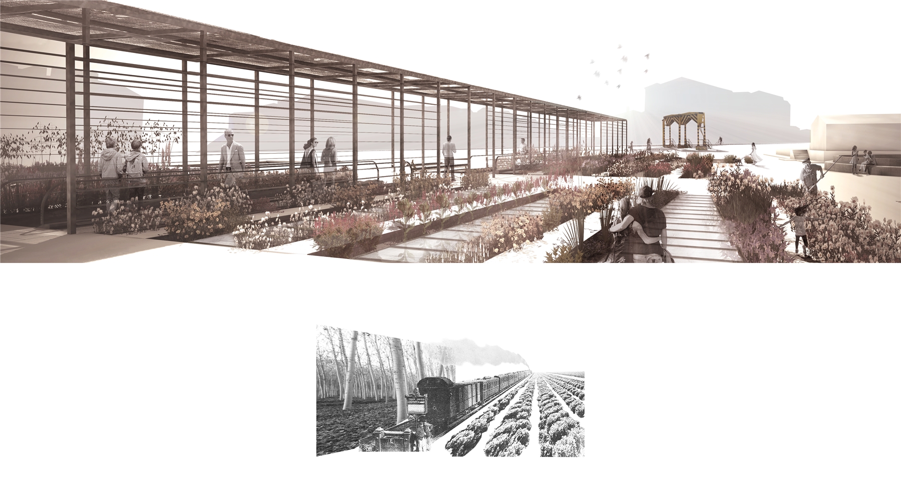Un PAISAJE RURURBANO que valoriza el patrimonio ferroviario y reinterpreta la memoria agrícola de los contornos de Granada.
