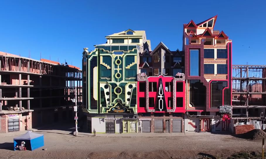 Freddy Mamani Silvestre inventó un nuevo estilo audaz y distintivo de la arquitectura boliviana. Tomando prestado de la cultura indígena aymara, sus edificios combinan colores brillantes y una sorprendente geometría similar a una nave espacial.