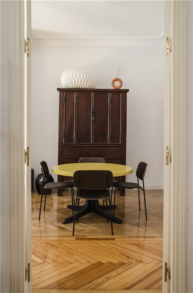 Se convierte en un objeto abstracto que hace respirar a la vivienda además de producir un cambio de atmósfera entre lo clásico y lo moderno.