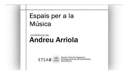 Conferència d'Andreu Arriola, professor del Departament de Projectes Arquitectònics de l'Etsab, presentat per Eduard Bru, Responsable de l'assignatura Projectes X del segon Quadrimestre. 2099.2/2960