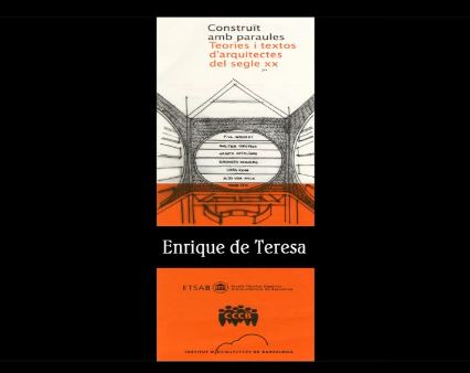 Conferència d'Enrique de Teresa, arquitecte i professor del Departament de Projectes Arquitectònics de l'ETSAM/UPM, amb la presentació de Fabián Pérez, director del curs. 1991. "El edificio en el paisaje, el contenido en la forma" (Publicat a Perspecta núm. 6, 1959.). 2099.2/1899