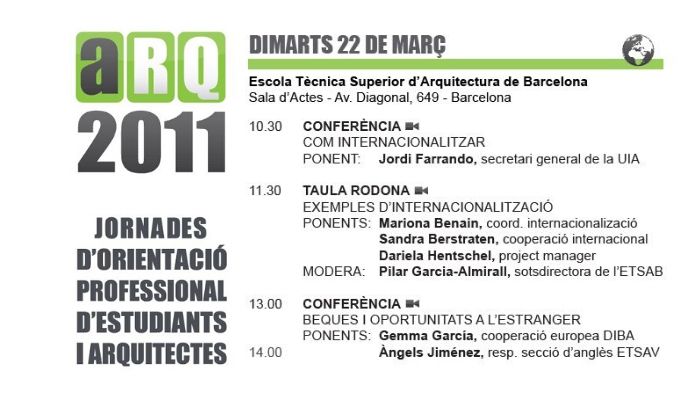 Nota: Otros títulos : Com internacionalitzar / ARQ 2011: Jornades d'orientació professional per a arquitectes i estudiants