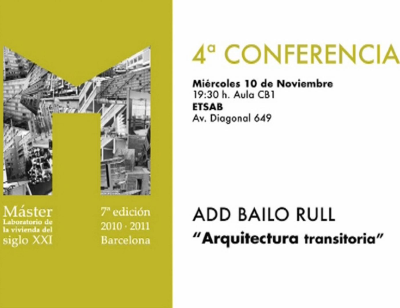 Conferencia de los arquitectos Manuel Bailo, profesor de Urbanismo de la ETSAB y Rosa Rull de Proyectos, del equipo ADD Arquitectura, presentados por Zaida Muxí, profesora del Departamento de Urbanismo de la ETSAB