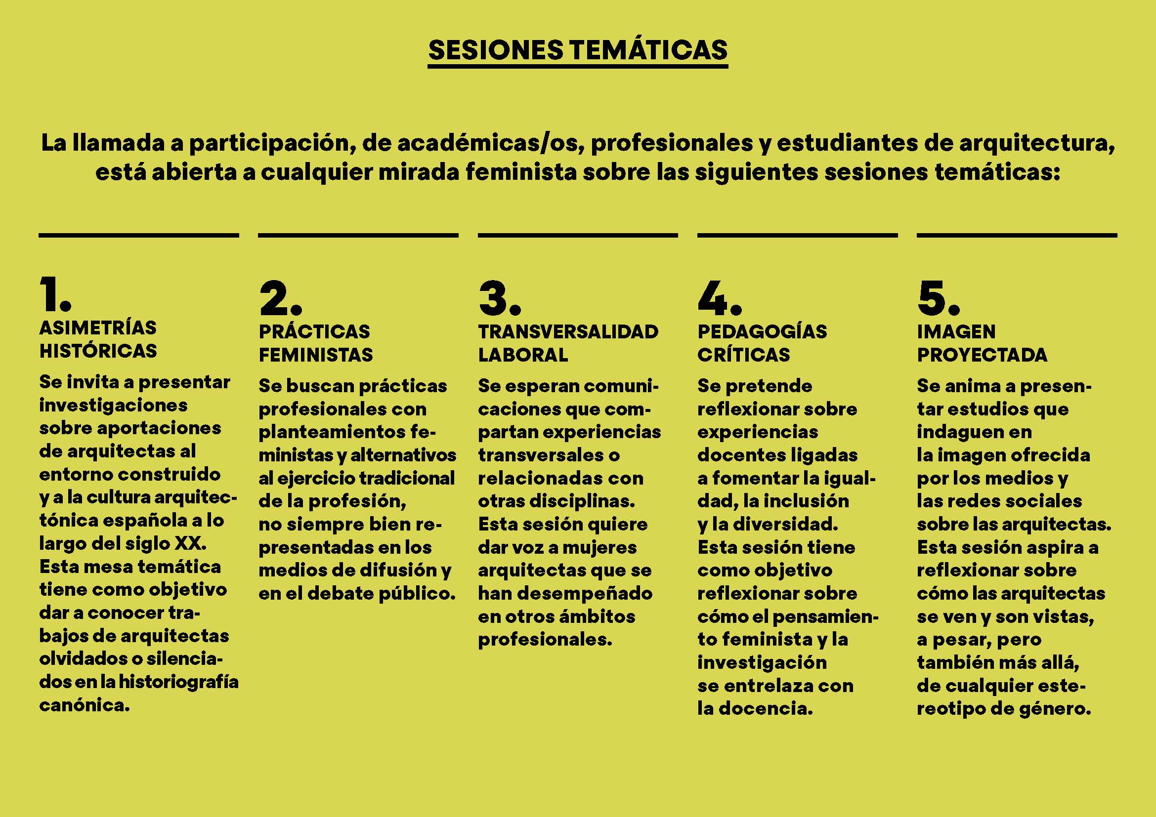 La arquitectura es la disciplina STEM que antes se ha feminizado en España. Desde hace décadas hay paridad en las aulas de las escuelas de arquitectura, pero ello no conlleva una situación de igualdad efectiva en la profesión. Según el Architect’s Council of Europe la media española de arquitectas registradas en activo es del 35%, la brecha salarial es del 12% y afecta a las mujeres de manera progresiva a partir de los 35 años. La situación es similar en toda Europa, donde esta media es del 25%. Este congreso pretende reflexionar sobre la situación de las mujeres en la arquitectura española, aunando estudios históricos con reflexiones contemporáneas, y dando voz a arquitectas de diversas generaciones y contextos cuyas prácticas, diversas e integradoras, puedan servir de referencia y estímulo a futuras profesionales.