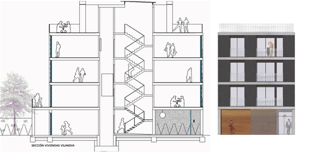 bloque de 7 viviendas entre medianeras en una pequeña población cerca de igualada