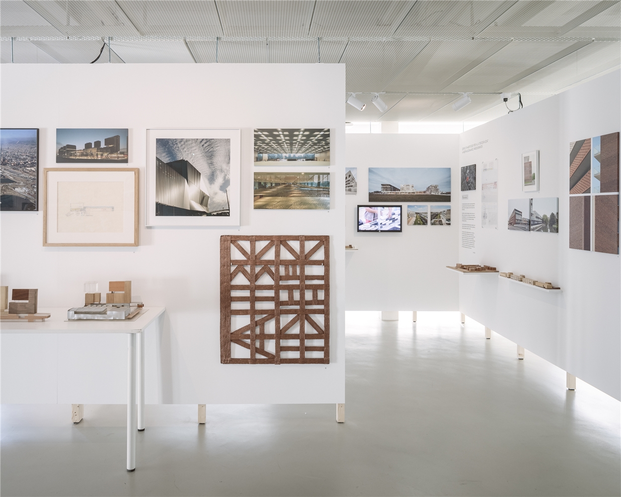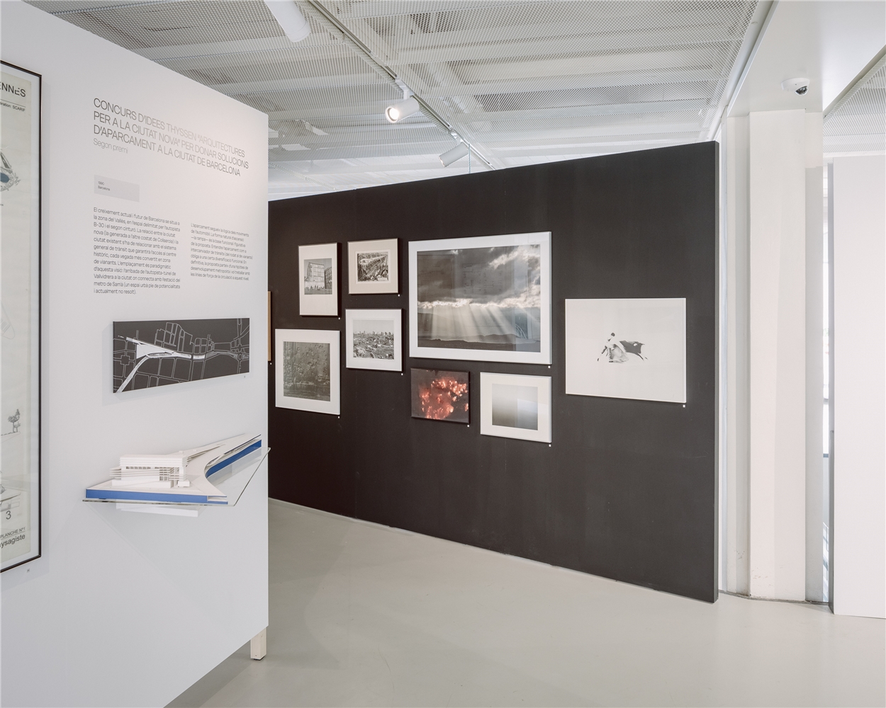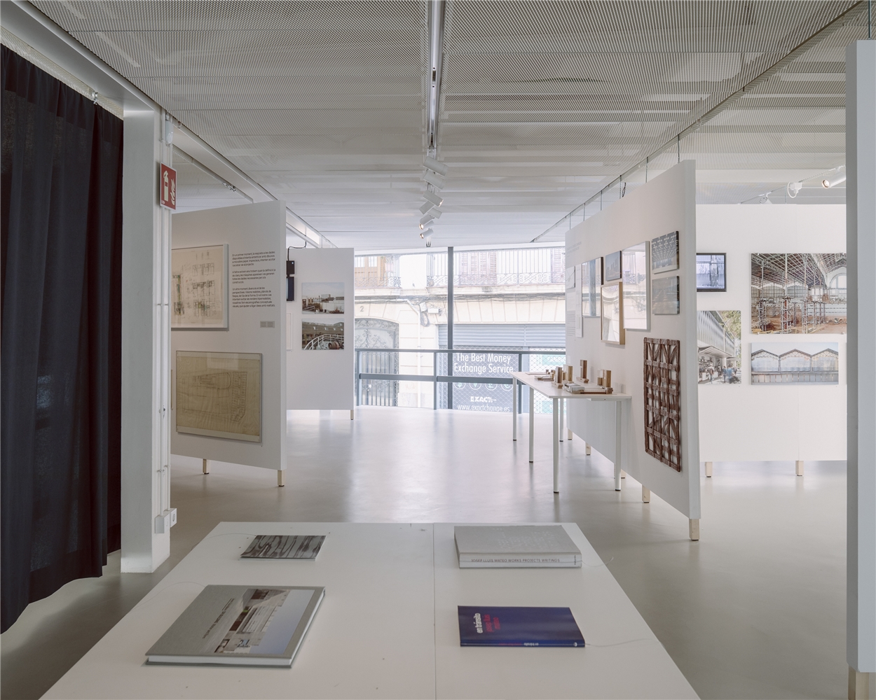 Para reforzar la materialidad (y materialización) que representan, se hace énfasis en lo que ocurre sobre el papel, en los dibujos, y en cómo estos buscan tomar forma, inicialmente, en maquetas; todas ellas representaciones que son proyecto, previas al objeto que permanece. La colección personal de fotografía de Josep Lluís Mateo y los libros que han ido impulsando o archivando pensamientos y obras sirven como paisaje que las sitúa. Muestran intereses y preocupaciones siempre relacionados con un contexto tan real por físico (el lugar) como informe. Estas últimas son, en gran medida, cuestiones socioculturales, relativas a aquello que ha definido cada contemporaneidad, pero también a lo que permanece de forma transversal. Mateo lo explica así: “la relación con el lugar como estímulo, no directamente continuista, realista” o bien como un “diálogo de una forma no patética, no caricaturesca [con el lugar]”, capaz de generar sobre él una nueva visión complementaria. Esto ocurre tanto cuando el contexto es más local como cuando debe entenderse con toda la apertura de campo —geográfica y conceptual— que lo emplaza (Europa); tanto en lo urbano, con una atención especial sobre lo suburbano y periférico, como en entornos naturales; tanto cuando el lenguaje utilizado es de lo más artesano —ligado, a menudo, a domesticidades concretas— como cuando aparece uno más industrializado, prefabricado y seriado; tanto cuando los huesos son huesos y la piel es piel como cuando huesos y piel (estructura y fachada) coinciden —este último, experimento emprendido junto a Agustí Obiol—. El cambio, la transformación, ya lo sabemos, son argumentos históricos. Respondiendo a ello, la obra que mostramos es una “obra abierta”.