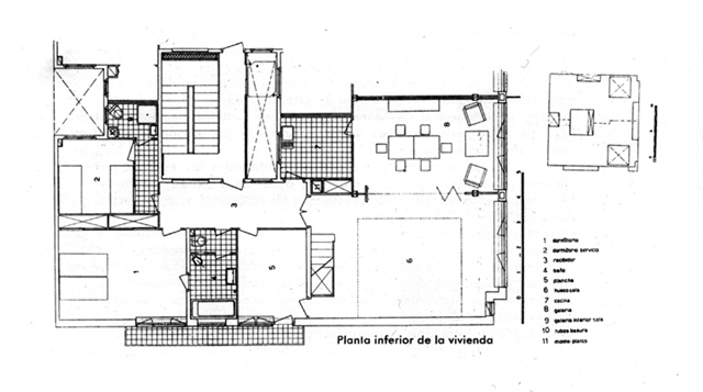 El edificio ocupa una esquina en la zona alta de Barcelona, y está formado por un total de seis viviendas dúplex, con un espacio a doble altura en la sala de estar. La elección del dúplex, que era una novedosa solución tipológica en ese momento, permitía reducir la superficie de las zonas de paso de las viviendas. Dentro del edificio encontramos todo tipo de artefactos técnicos, como tubos de recogida de basuras, ascensores con doble cabina (ascensor y montacargas), montaplatos, etc., que expresan la tendencia maquinista del edificio. Gracias a las dimensiones holgadas de las viviendas, Sert pudo explorar con gran intensidad las posibilidades expresivas del lenguaje purista de Le Corbusier, hasta el punto de que este edificio se puede considerar como uno de los más significativos de su época. En la fachada que da a la calle Muntaner se expresa la distribución interior de los dúplex, a través de la alternancia de ventanas, terrazas y balcones; en cambio, en la fachada que da a la calle Párroco Ubach, los balcones se repiten de arriba abajo. Las dos primeras crujías que dan a la calle Muntaner son de estructura metálica, las demás, de muros de carga. Los cerramientos de estuco están pintados de color gris y verde pálido (verde Bauhaus), los tubos de acero son blancos, las ventanas metálicas, de color gris oscuro, y la parte baja del edificio está revestida con paneles de vidrio, pintados por su cara interior. [Xavier Llobet Ribeiro]