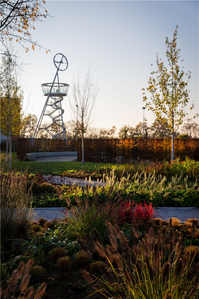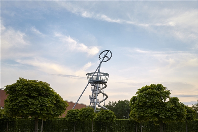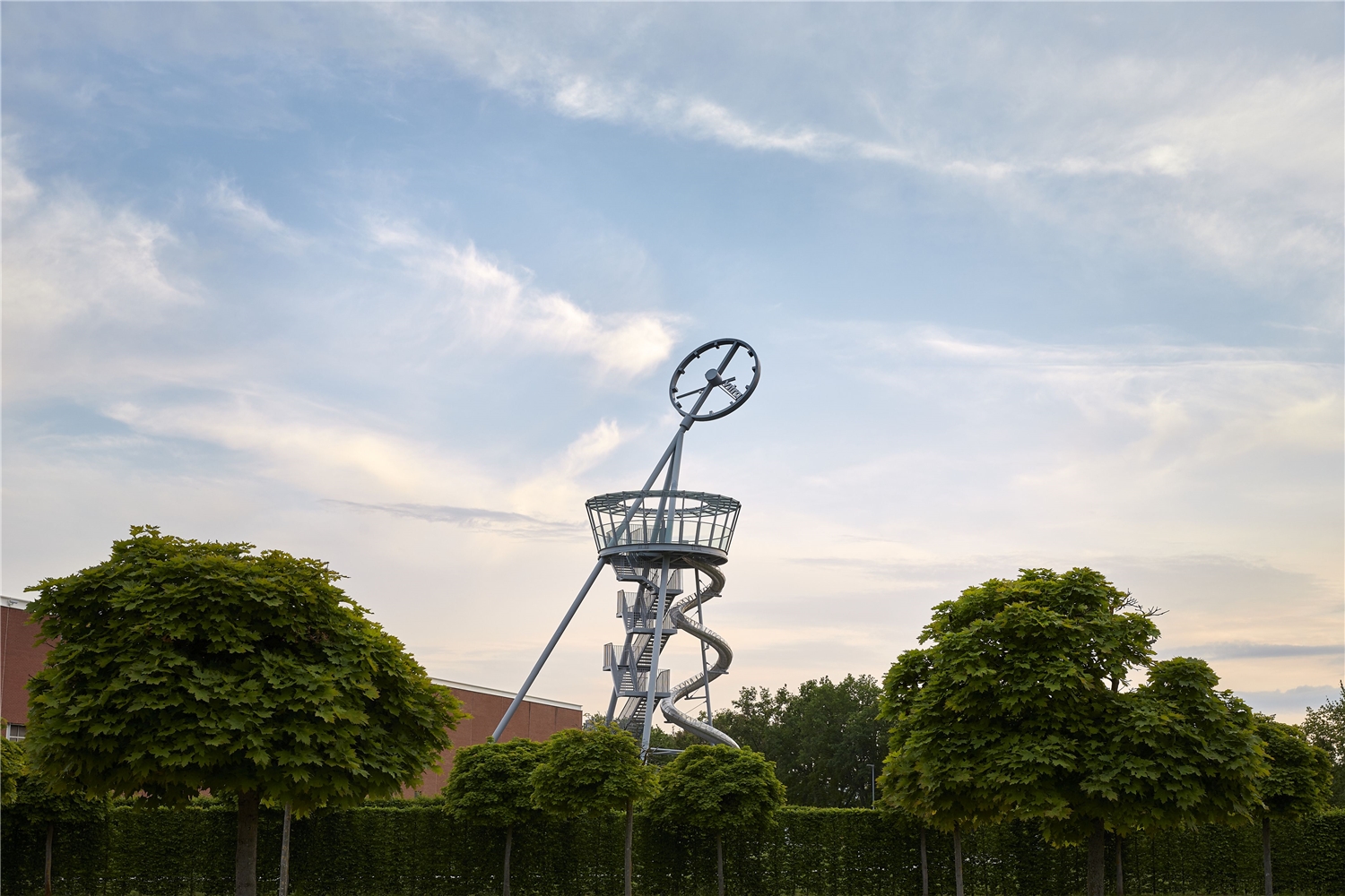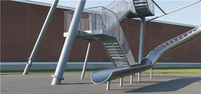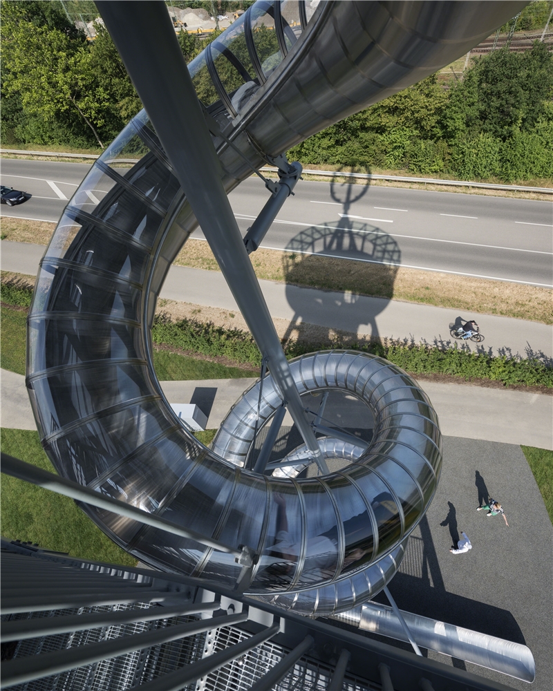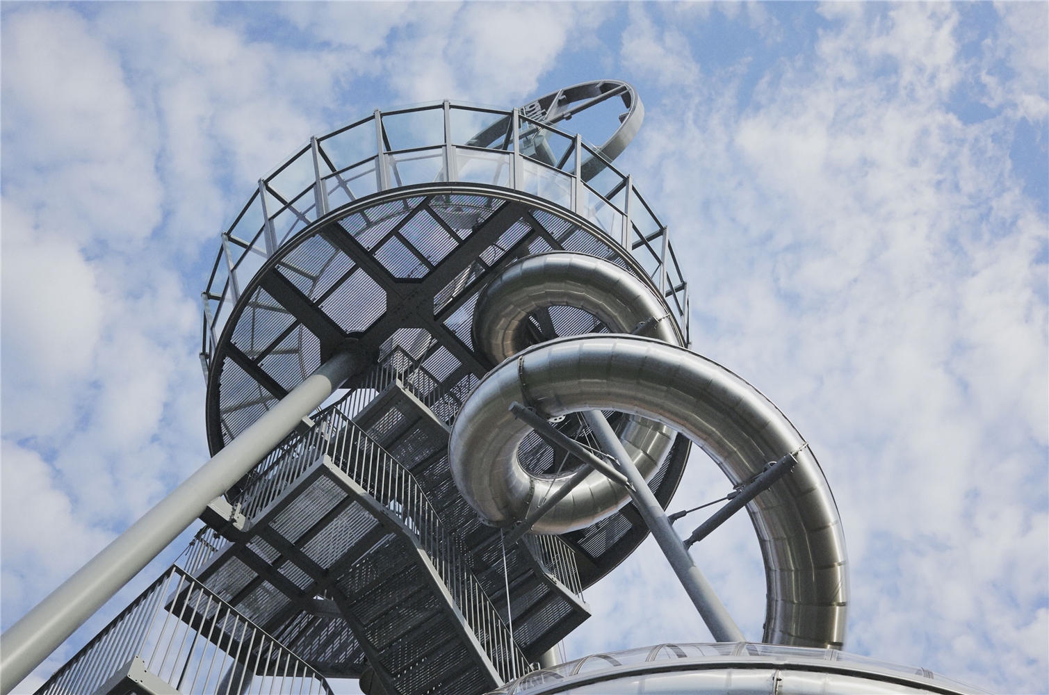 La Vitra Torre Tobogán de 30,7 metros de alto, del artista alemán Carsten Höller, es un mirador, un tobogán y una obra de arte al mismo tiempo. Está compuesta por tres soportes de acero inclinados que convergen entre sí y en cuya intersección se ha acoplado un reloj giratorio de seis metros de diámetro. A la construcción se accede mediante una escalera de dos tramos con rellanos y ajustada a los pilares inclinados. A 17 metros de altura hay un mirador con vistas a todo el recinto aledaño del campus y a los terrenos que lo rodean. La plataforma es además el punto de salida del tobogán de tubos curvos de 38 metros de longitud.