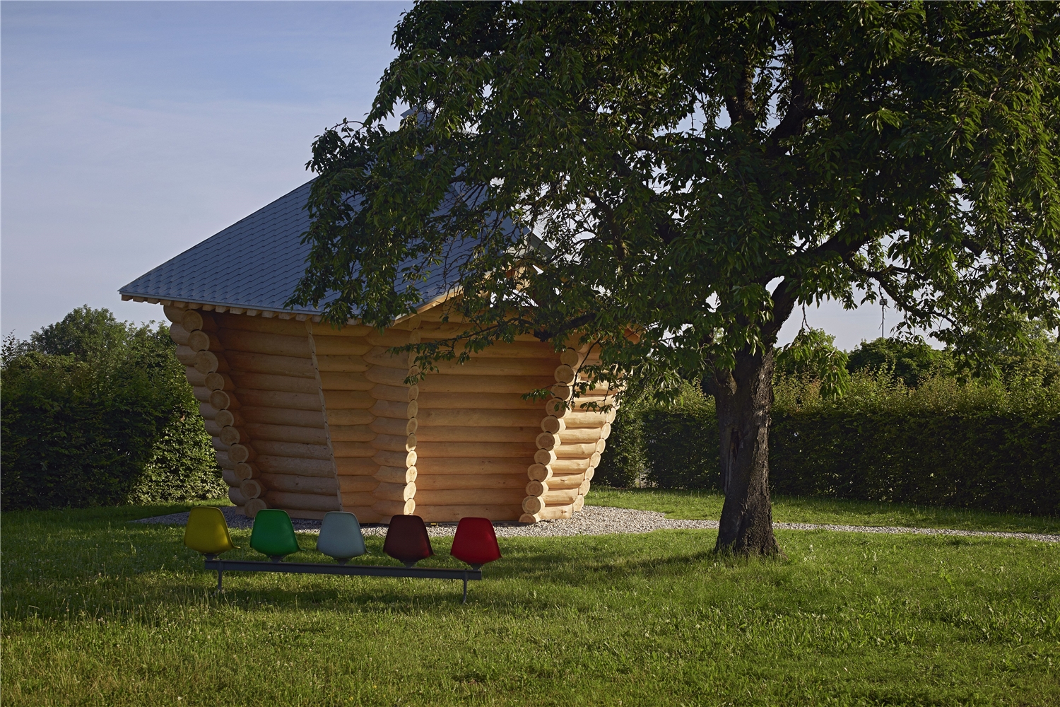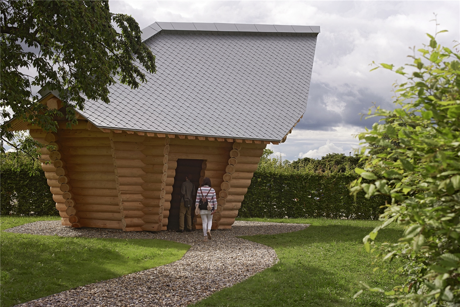 Blockhaus es un objeto derivado de un modelo a escala 1:10 expuesto por Thomas Schütte en 2016 en la Galería Konrad Fischer de Düsseldorf. Rolf Fehlbaum, presidente emérito de Vitra, vio el modelo y preguntó al artista si le parecía factible construirlo a tamaño real en Vitra Campus.